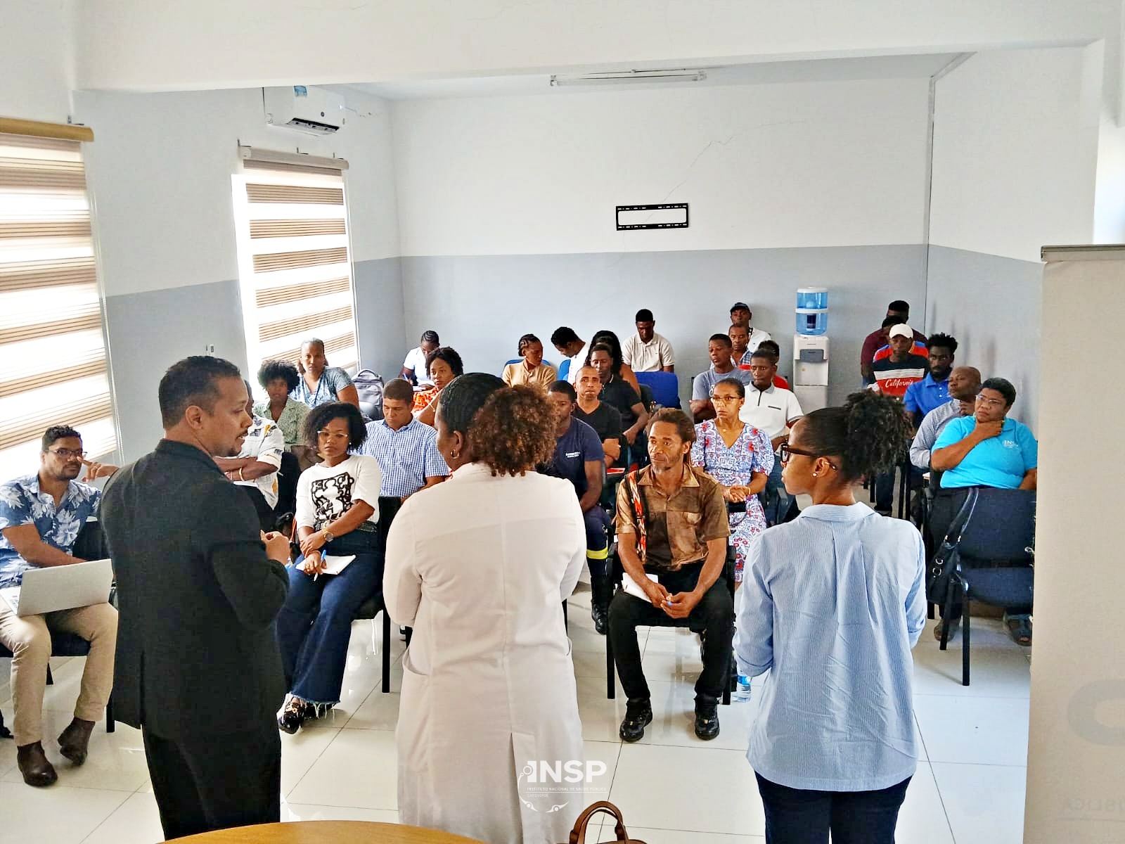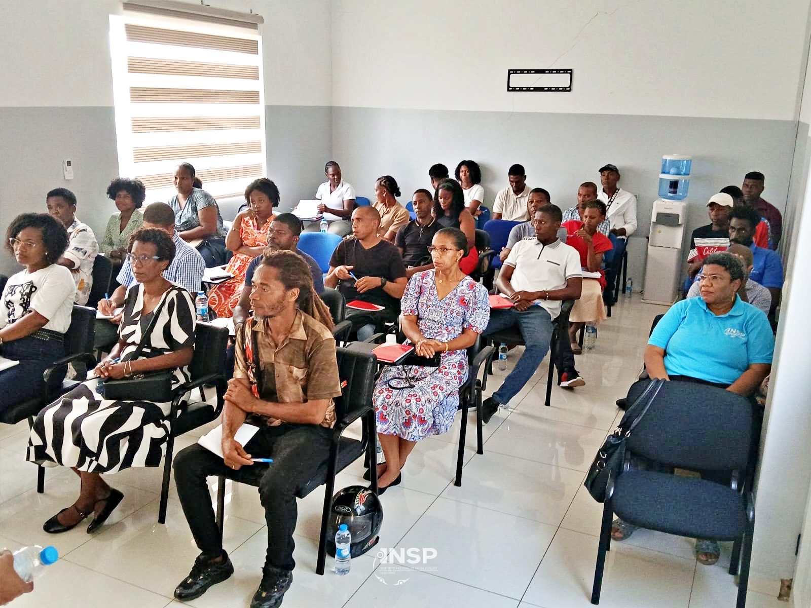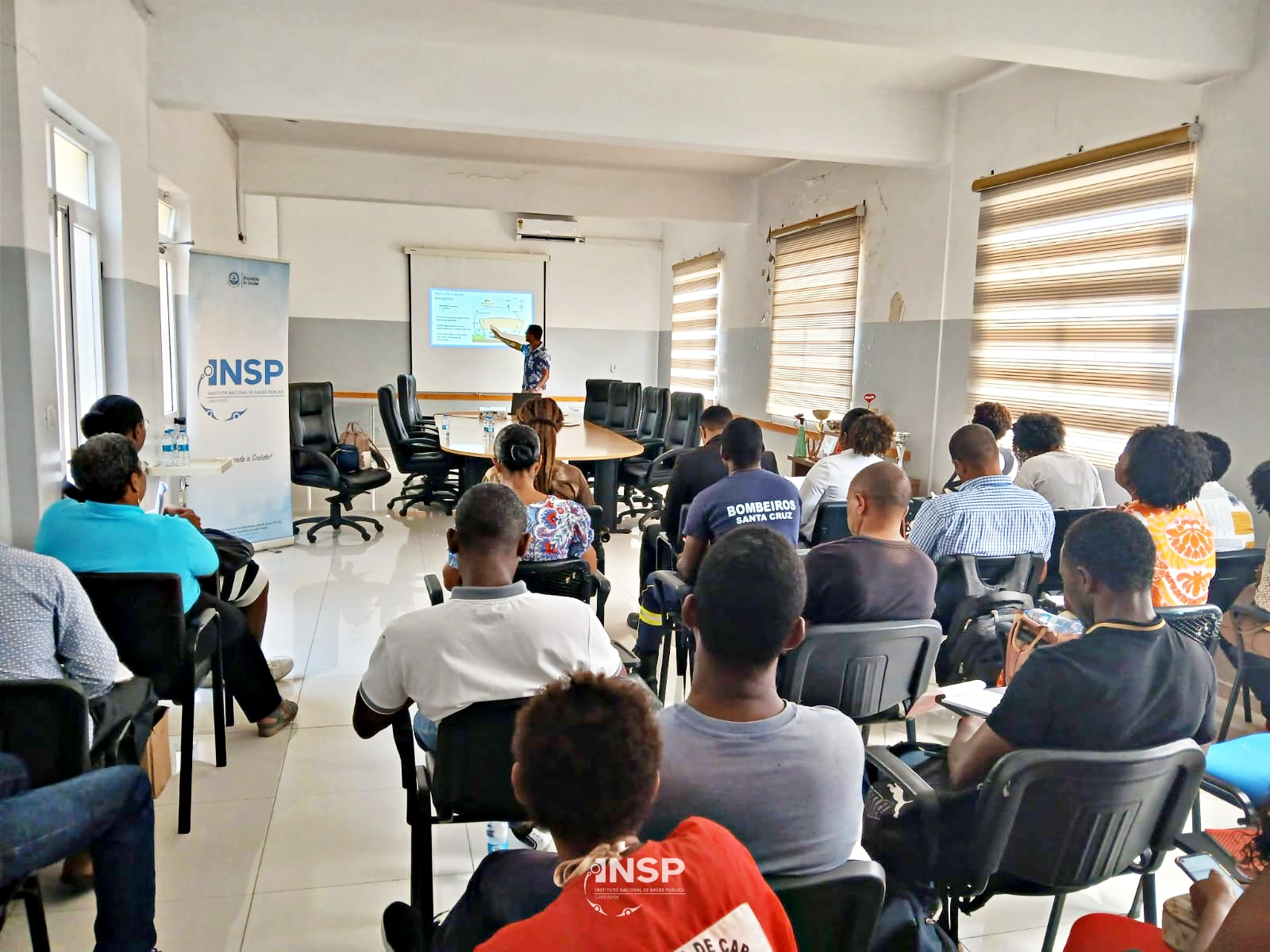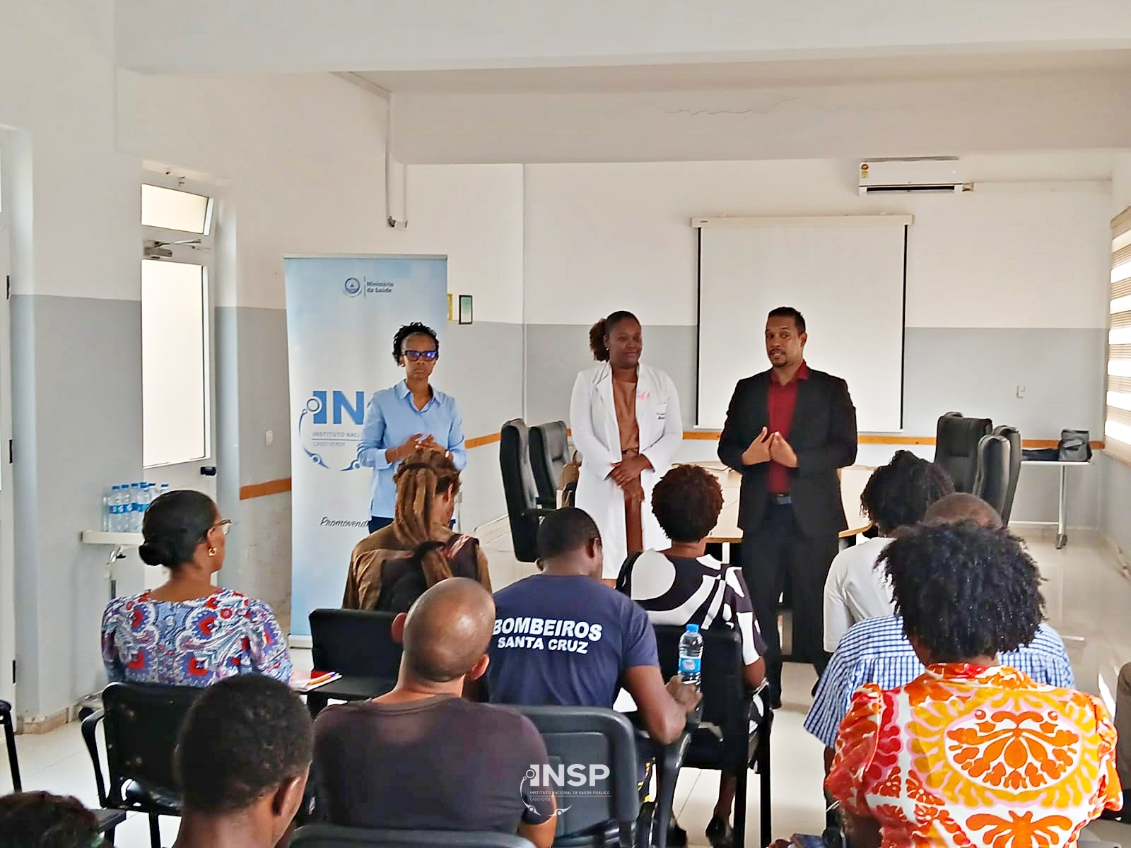 O Instituto Nacional de Saúde Pública (INSP), em parceria com a Delegacia de Saúde de Santa Cruz e a Região Sanitária de Santiago Norte, realizou nesta quarta-feira, 26 de novembro, uma ação de capacitação dirigida a agentes de Informação, Educação e Comunicação (IEC), equipas de luta anti vetorial, líderes comunitários e parceiros locais. A formação teve lugar na sala de reuniões da Delegacia de Saúde de Santa Cruz.