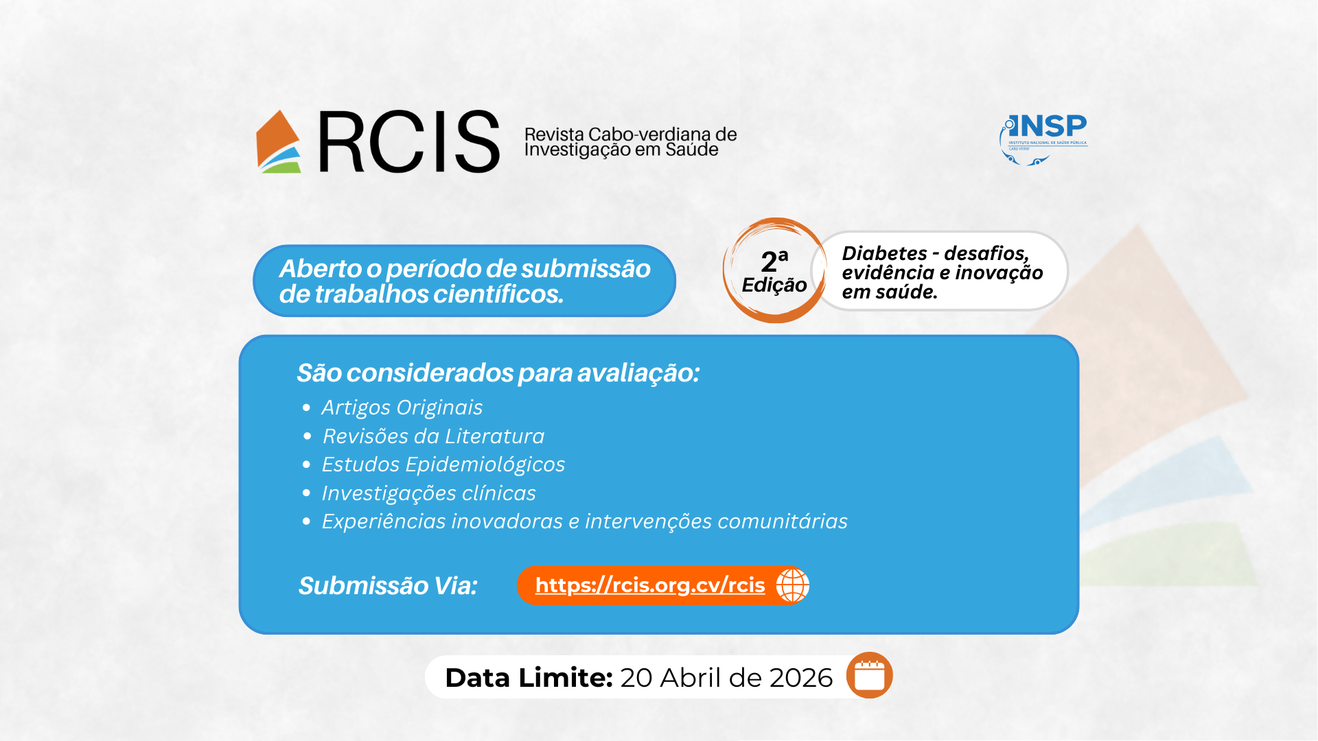 Chamada para Submissão de trabalhos científicos na RCIS – INSP